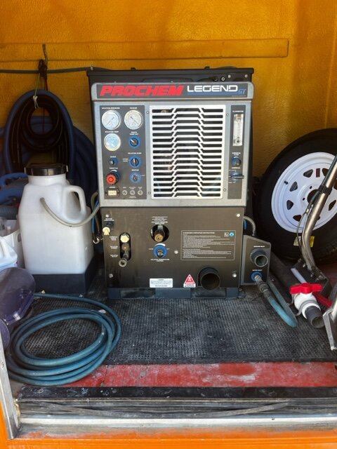 2019 Prochem Legend GT with 353 hours on it. Brand new Mytee upholstery tool, . Serviced at Interlink/Aramsco Omaha May, 2024. SX12, Stair Tool, Aluminum wand all serviced same time Legend was at interlink. 300 ft pressure, 250 ft vac, 3 and 1/2 gallons of Biobreak with Citrus Solv, 3 and 1/2 gallons of Fabset along with extra chemicals. 3 omni dry fans. 2016 Tornado 16/3 r floor buffer. 2014 Square Buffer with 4 red pads and blue tile pad. 75 Gallon Dump tank, 2019 12ft by 8ft enclosed cargo trailer with brand new spare tire and spray foam insulated. 5 gallon VP gas tank lined into Truckmount. 15ft pressure washer gun and hose. Phone number 775 three seven 8 three nine 3 four. EMAIL me for photos! $19K OBO