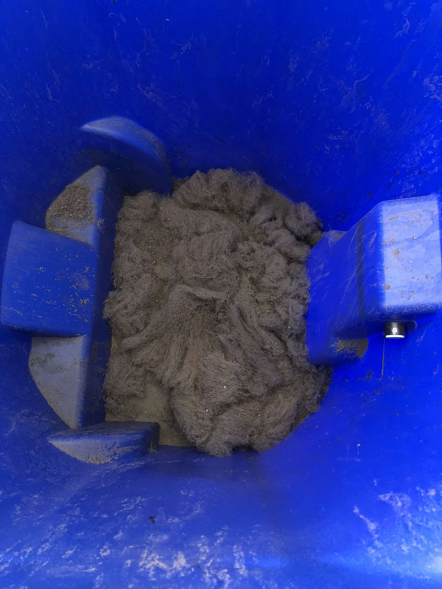 That’s a photo Jr sent me today. It’s the dog hair he vacuumed up out of a job today. That’s the inside of a Waste Management trash can