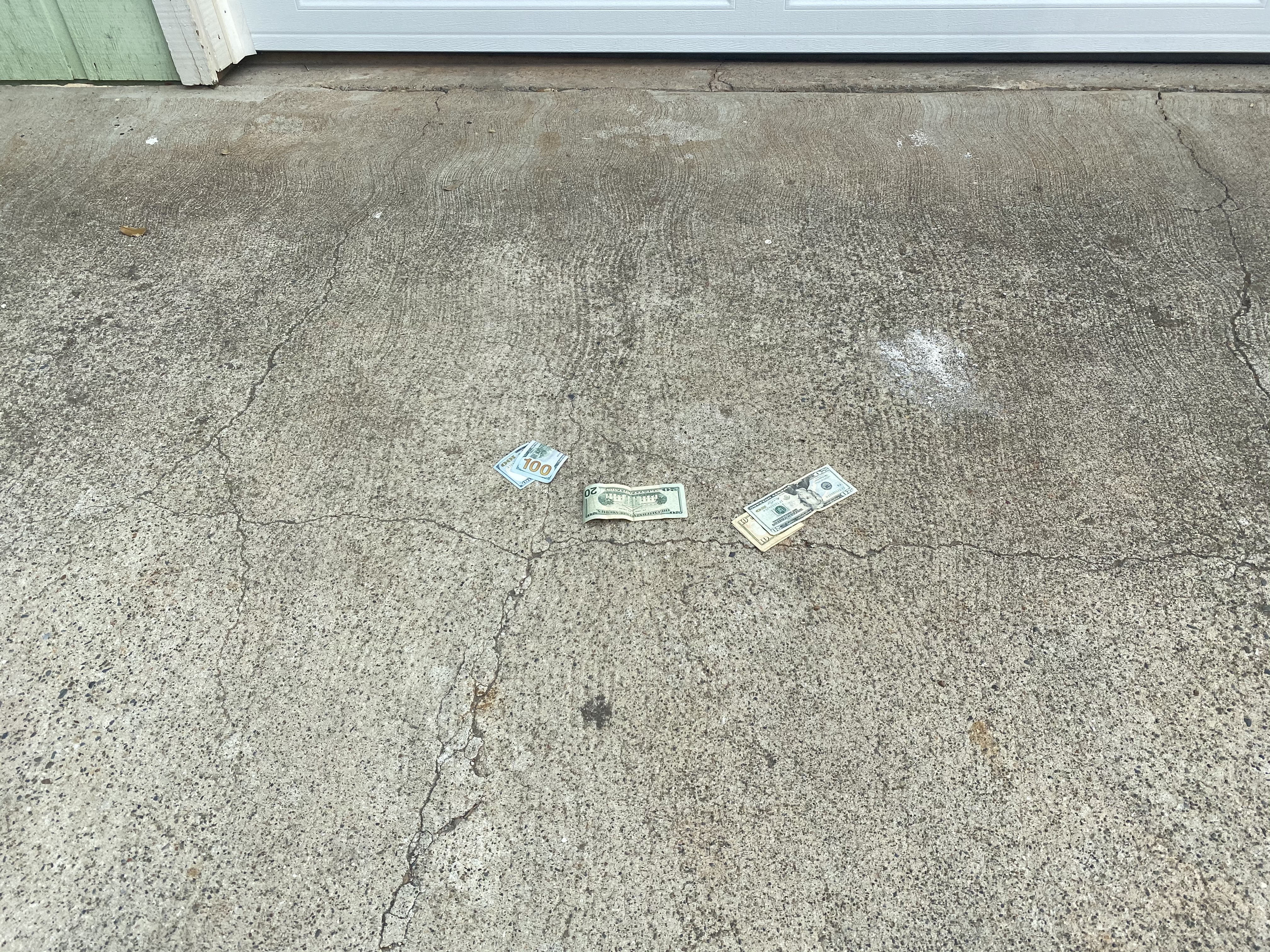 Bopped on my motorcycle and sped back to the job-site. Realtors were there showing the house. On the ground in front of the garage was my moola. I got lucky.