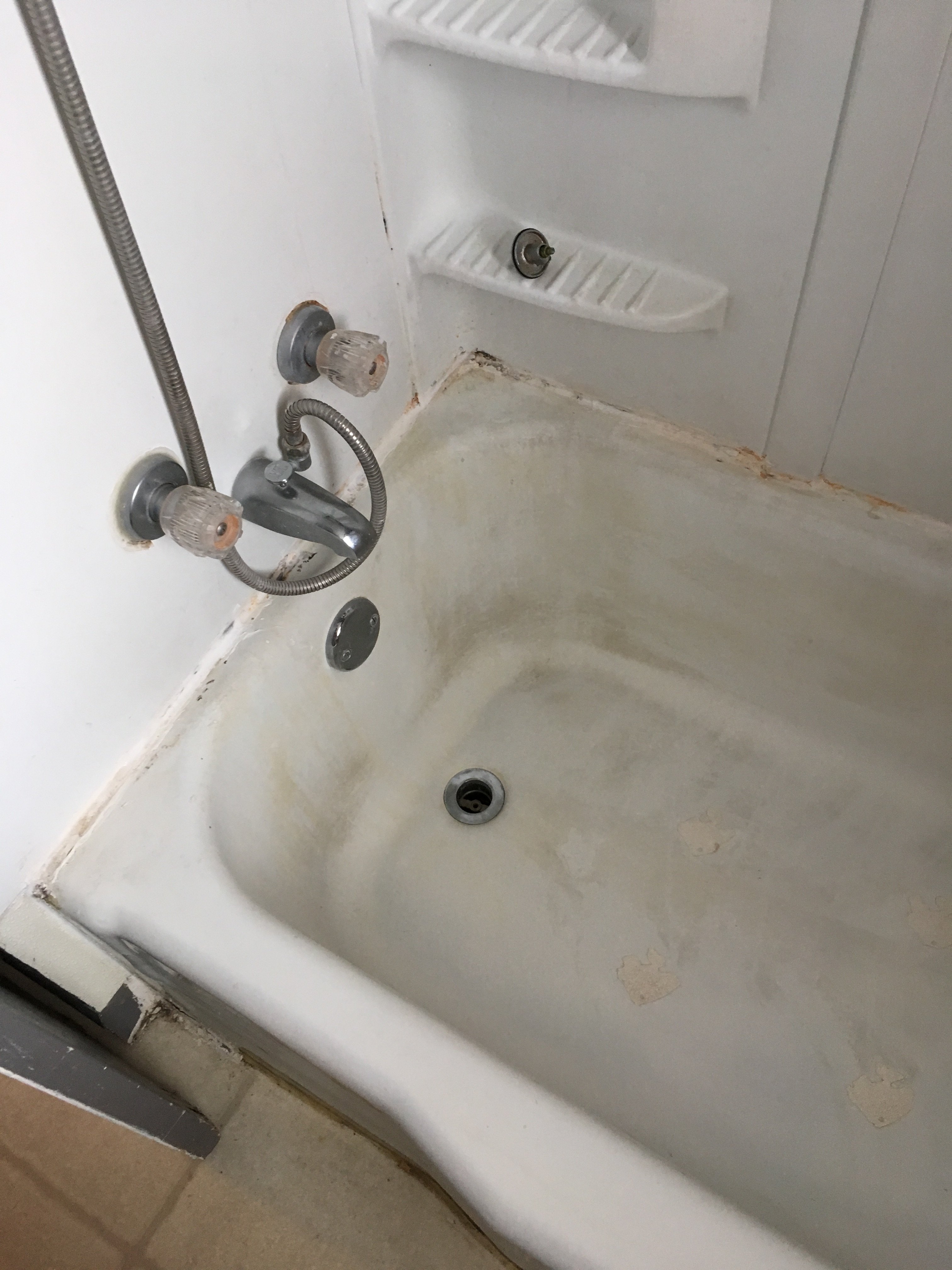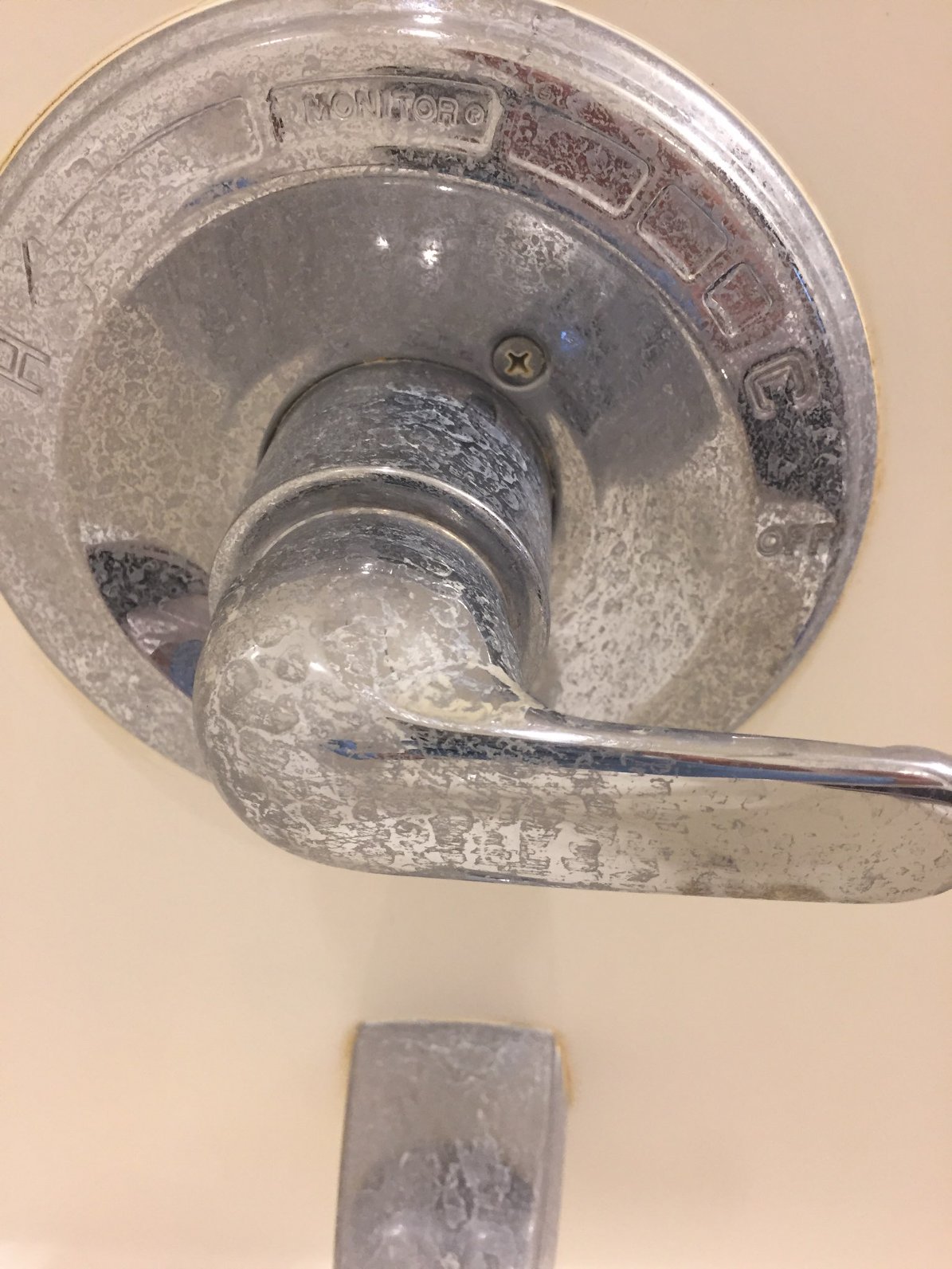 Two products. Super bowl toilet cleaner is the strong acid and hold fast on the chrome and less nasty. Gotta keep the water running when using super bowl. Blue scratch less sponges and nylon brush and a plastic scraper.I do it all the time too. Easy peasy. Whats your choice of cleaner again? I forgot.
