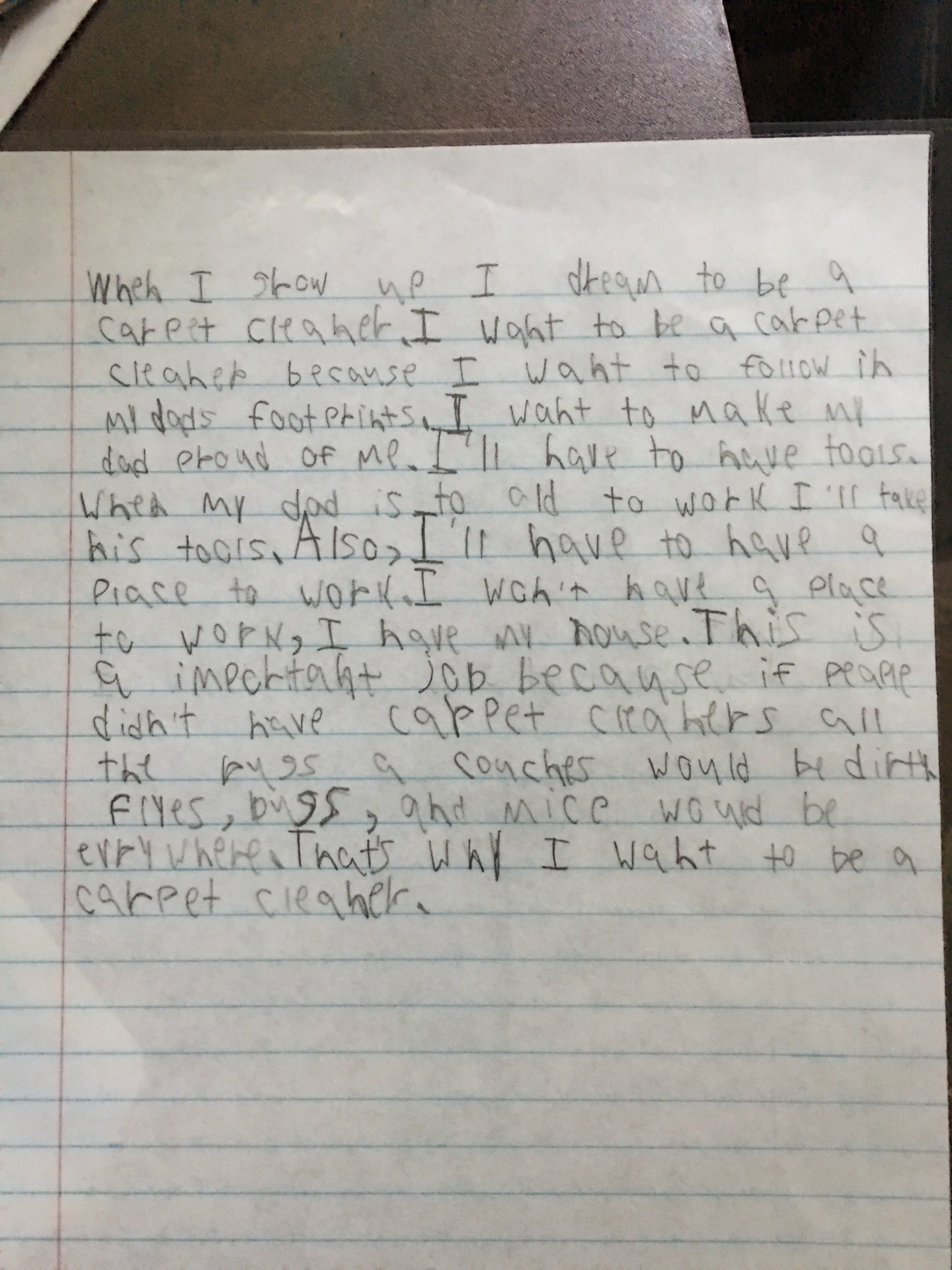My wife showed me the one that she laminated, that was the finished report he wrote, that I replaced above