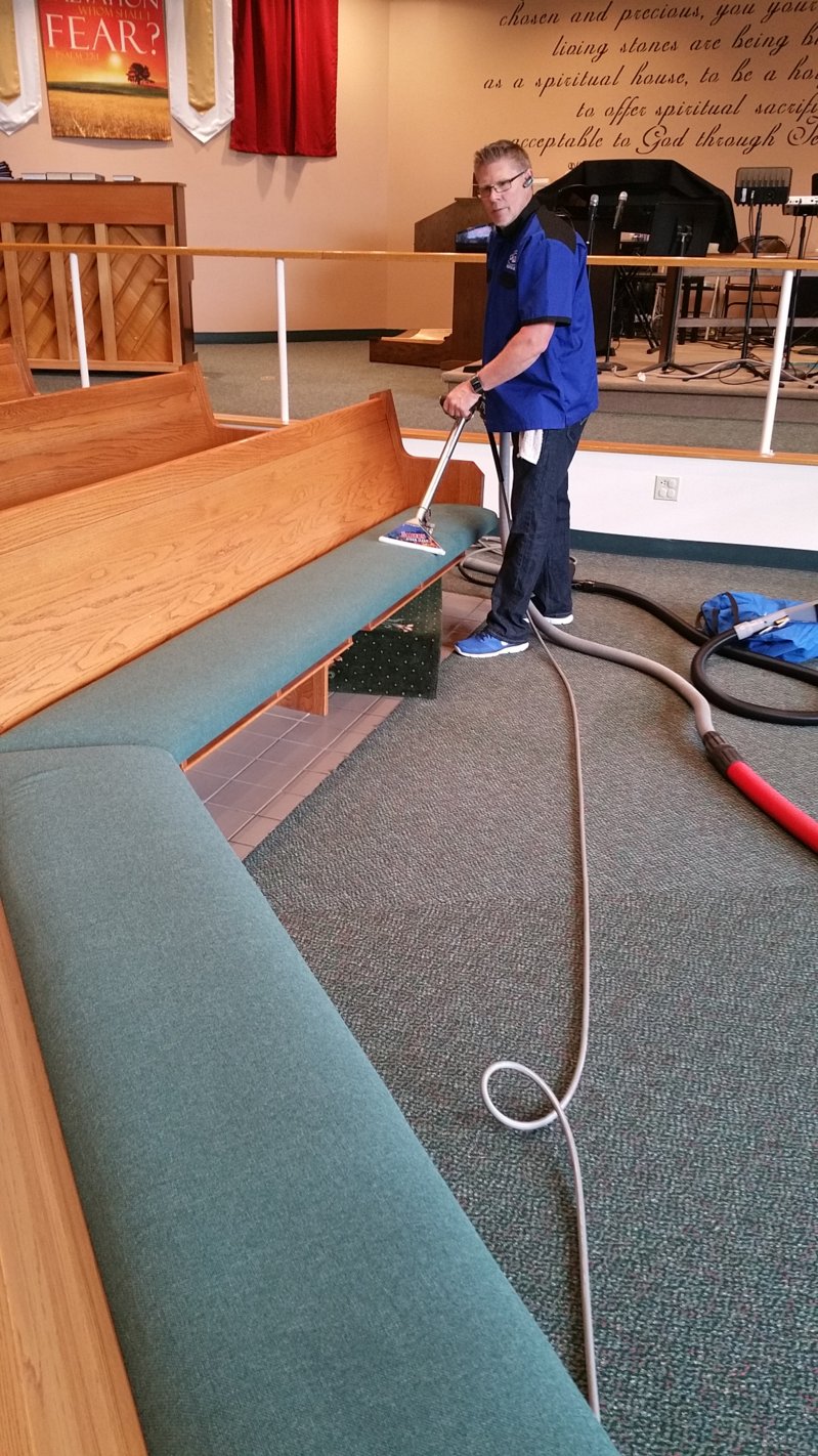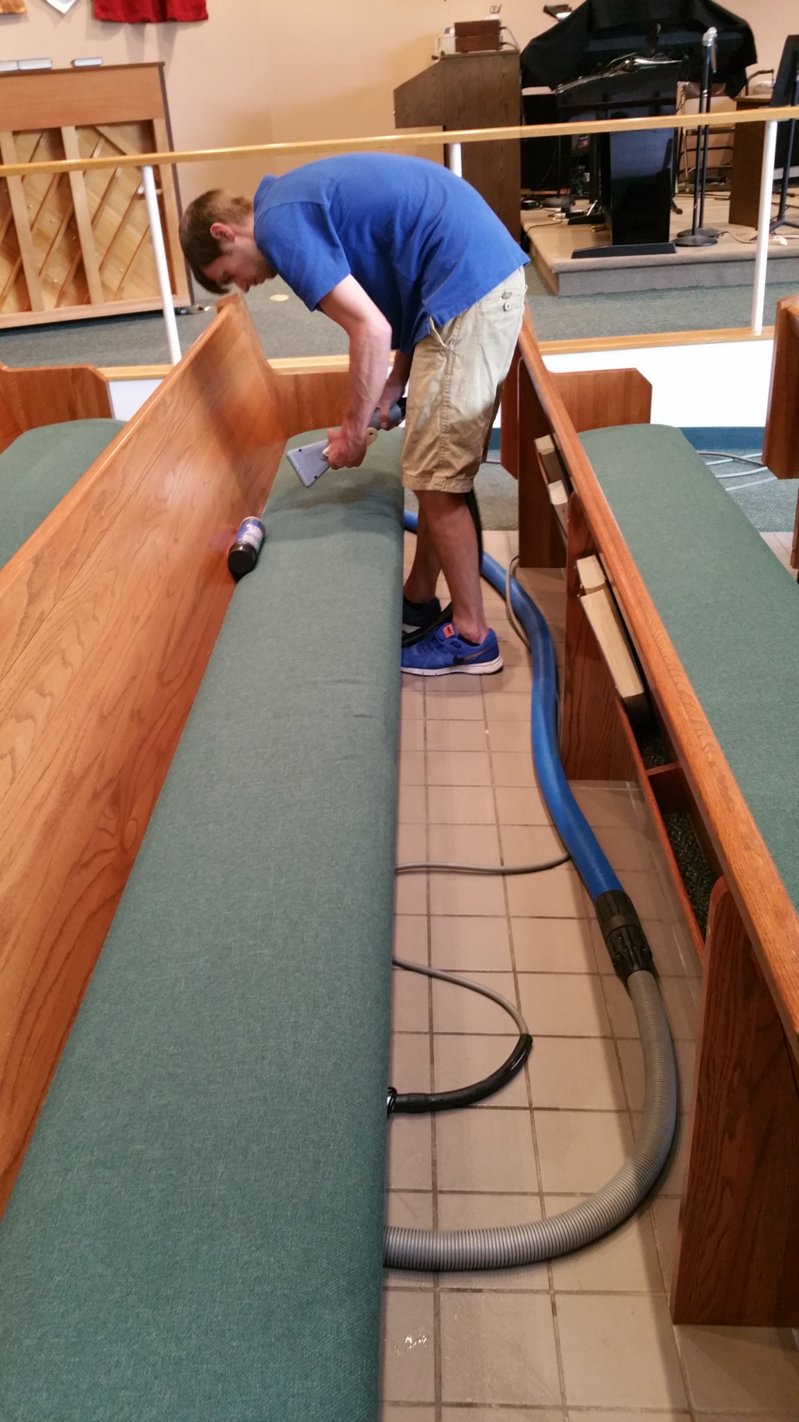 Don't take your residential mindset into a church, or you'll leave money on the table. A church with 6000 linear ft of pews is not a church that is going to blink at spending $9000 to clean them.