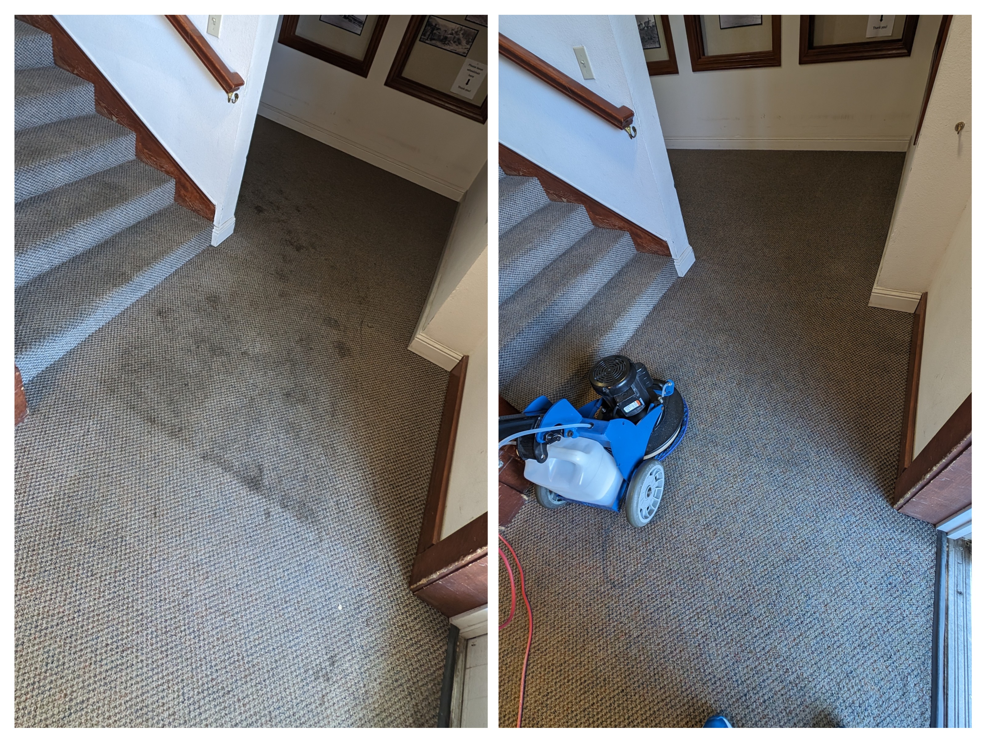 I was there a few months back for a presentation and noticed all those horrible spots and told them I would clean it in the main hallway up at no charge since it's a non-profit turns out they brought a crew in and prepped about 5,000 ft of hallways three staircases and countless display and meeting rooms, so I just went for it...