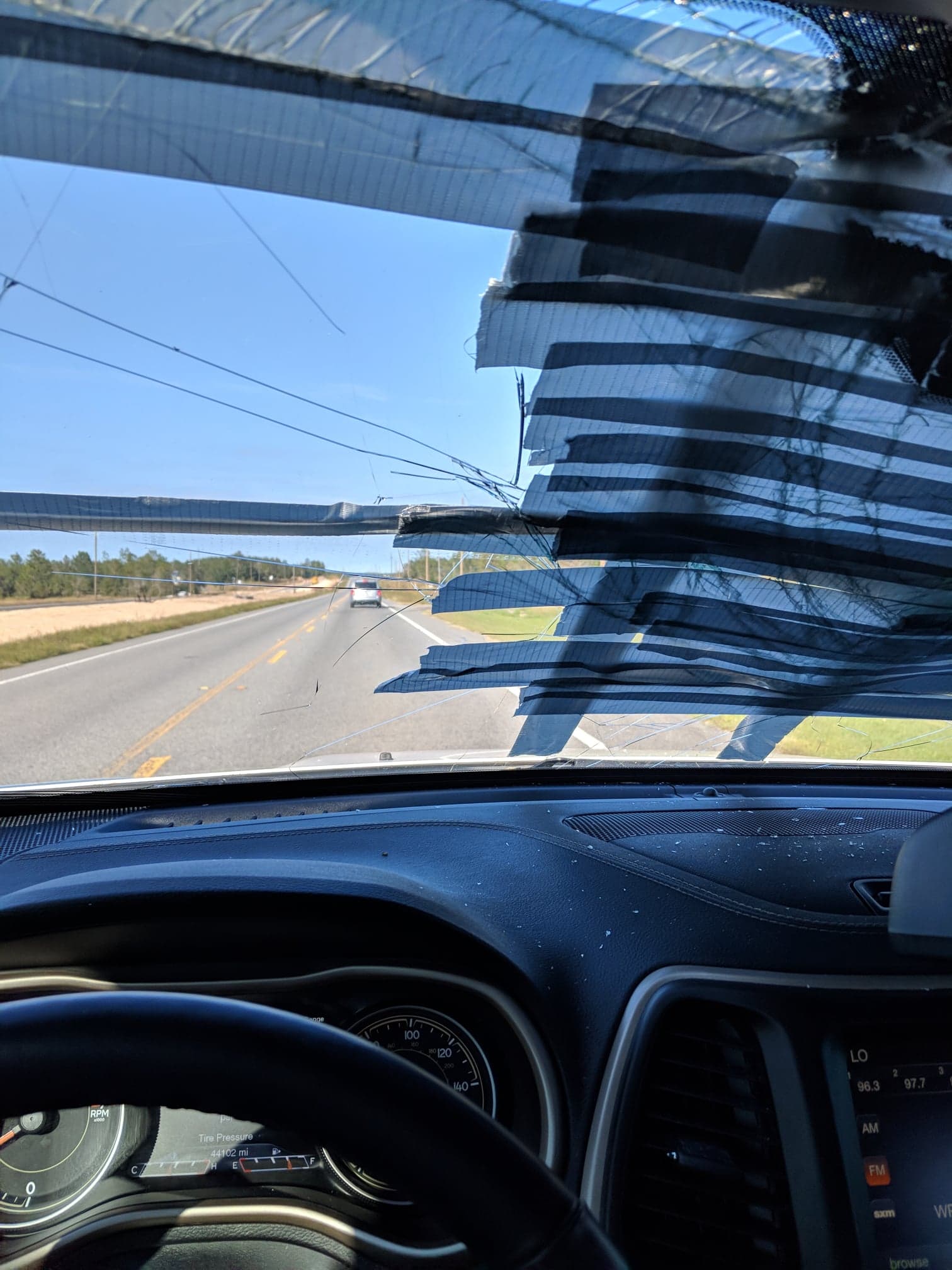Had to drive an hour and a half outside of town to find a shop to fix my car. That was fun with air coming through my windshield and wearing safety glasses to not get glass in my eyes.