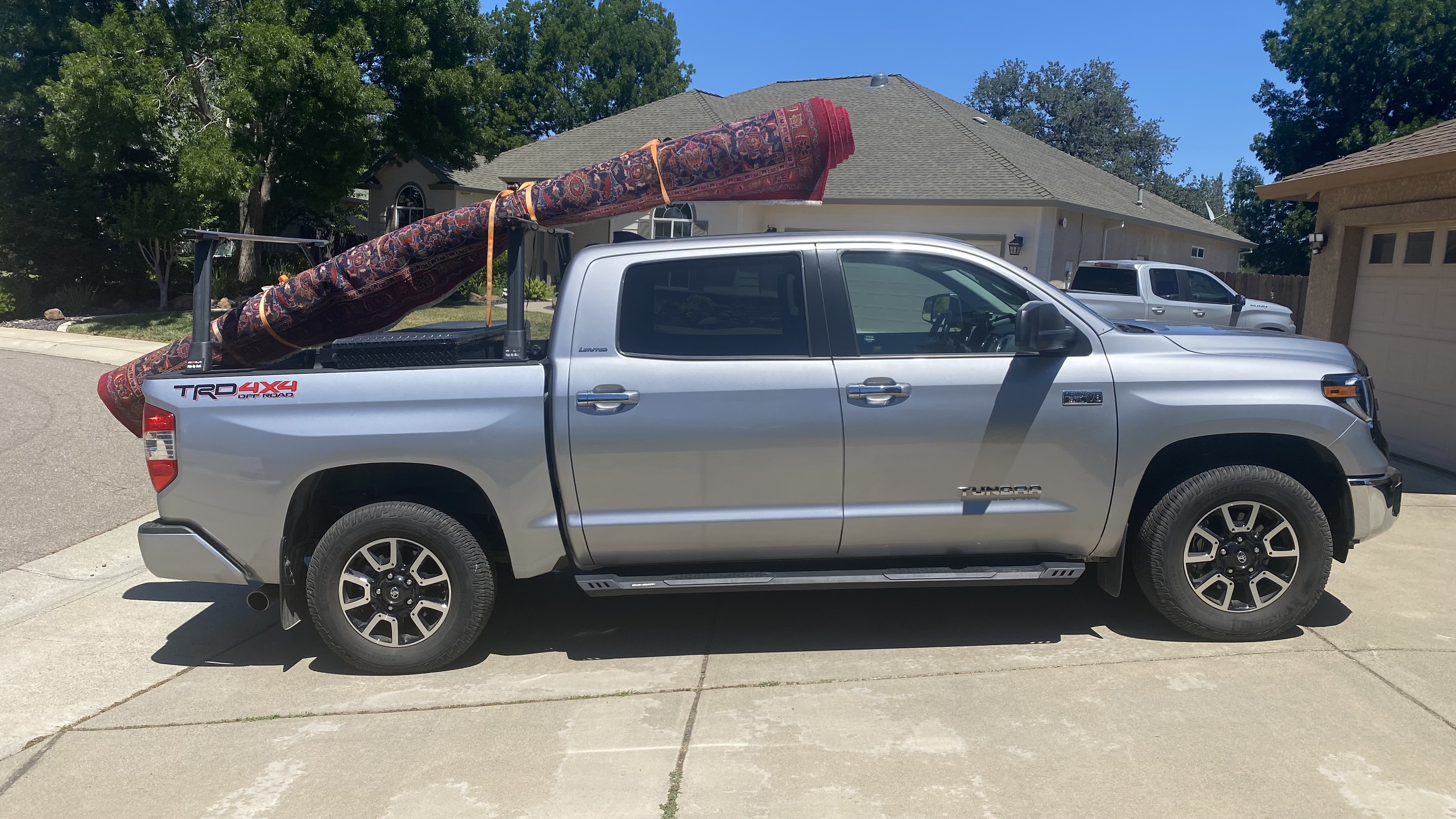 The customer is a multimillionaire that is retired from a well known pharma company. His place is a Log palace 2 miles up a private dirt road at the base of Mt Shasta. I had just washed my truck so I had to drive extra slow to keep the rug and my truck clean.I wonder what the customer will think if she sees this pulling in her driveway