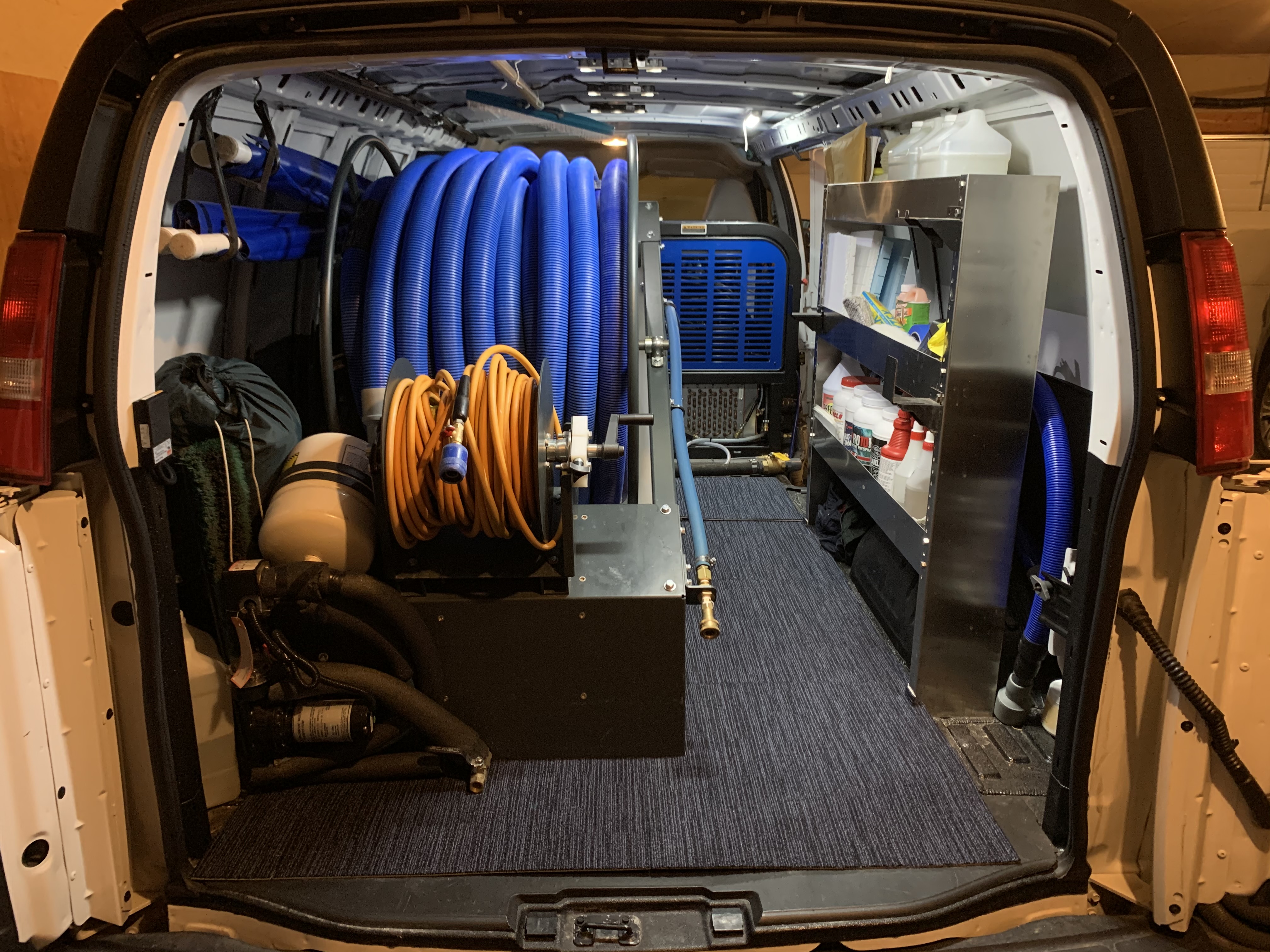 For a 20 year old van, it's in great shape. The reel is so easy to turn I don't need any help. Different if your reel is mounted deeper in the truck. One of the things to think about is, what happens if your electric reel malfunctions? Blows a breaker or fuse? How difficult is it now to manually roll up your hoses connected to an electric drive motor? Can you easily disconnect the motor from the reel?