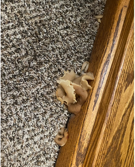 Cleaned a carpet today and I bent down to move the dog toy piece of rawhide stuff out of the way. I discovered it was a fungus growing out of the carpet.