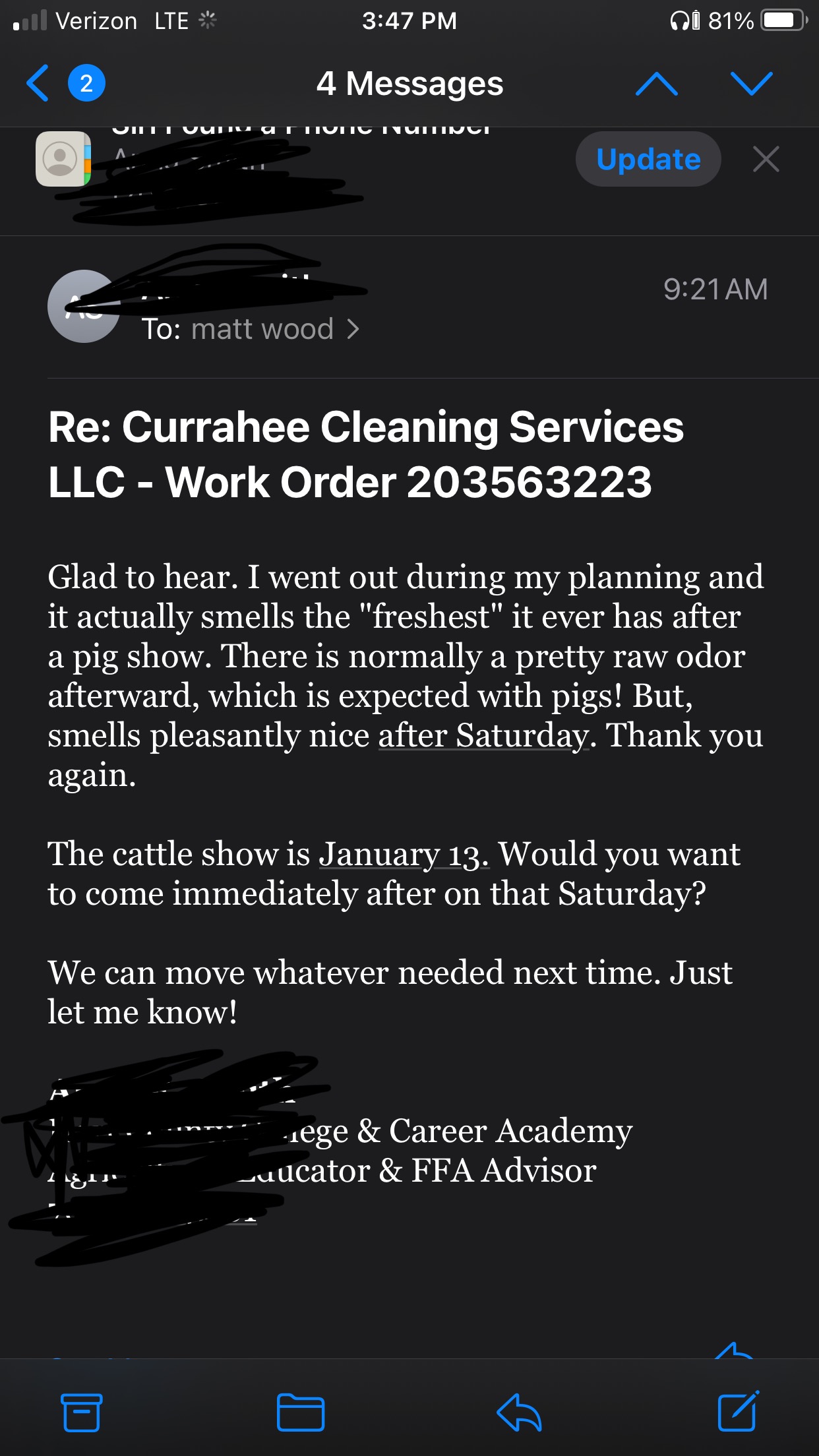 I did another pig infested astroturf and I got the best follow up I’ve ever received. I’ve tried every chemistry known to us for farm animal biohazard cleanup and finally found the right treat and rinse