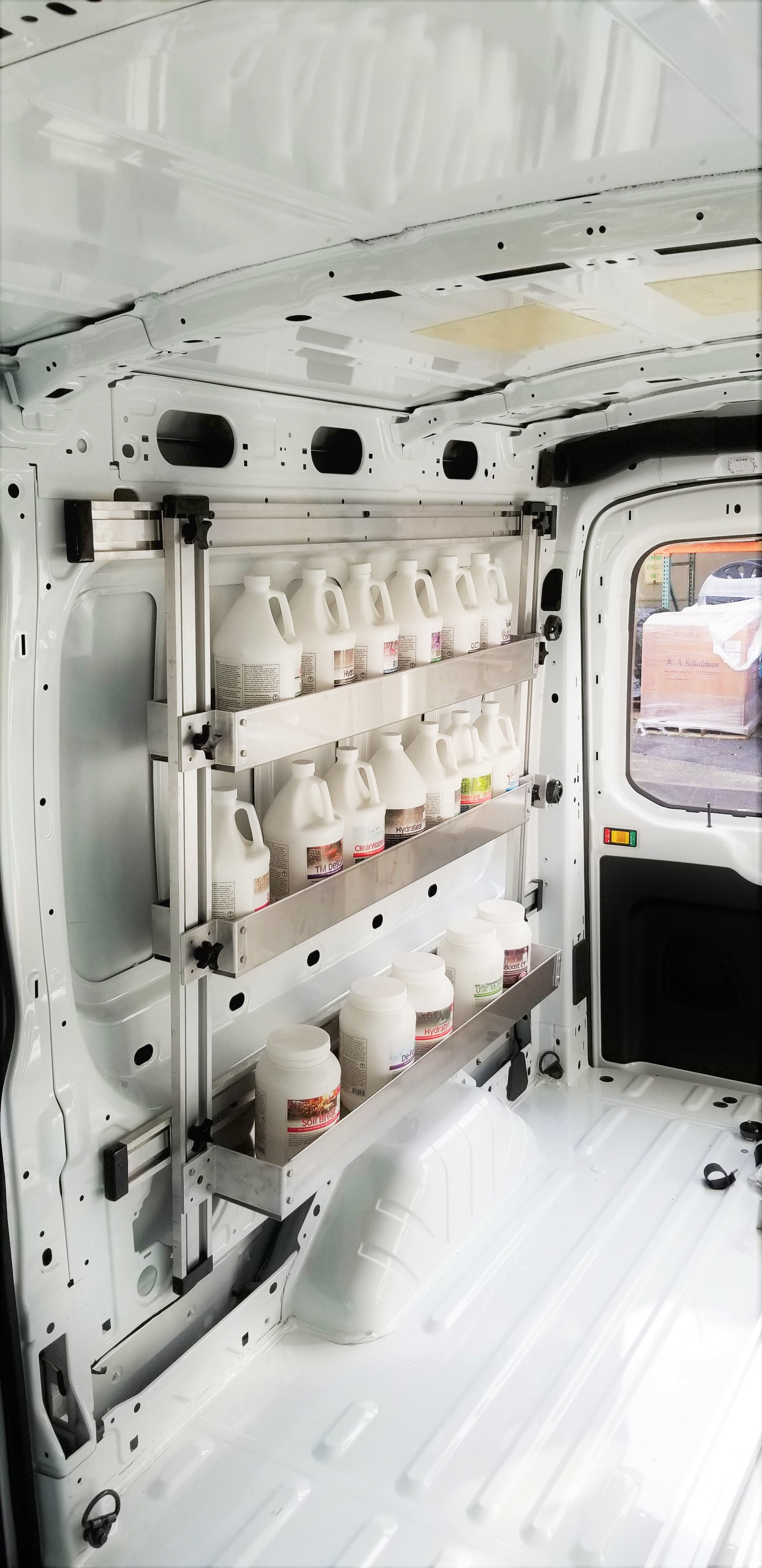 HydraMaster’s HydraShelf Adjustable Shelving System maximizes available space in your van to fit more tools, chemicals, drying equipment, instruments, and accessories without losing valuable floor space. It