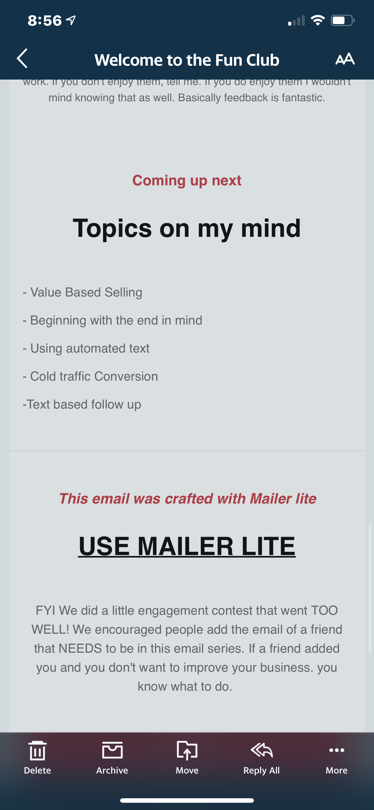 | 8) FAQs. Customer questions fuel highly relatable email banter - if they are asking, they want to know more. And their friends are probably asking, too! |