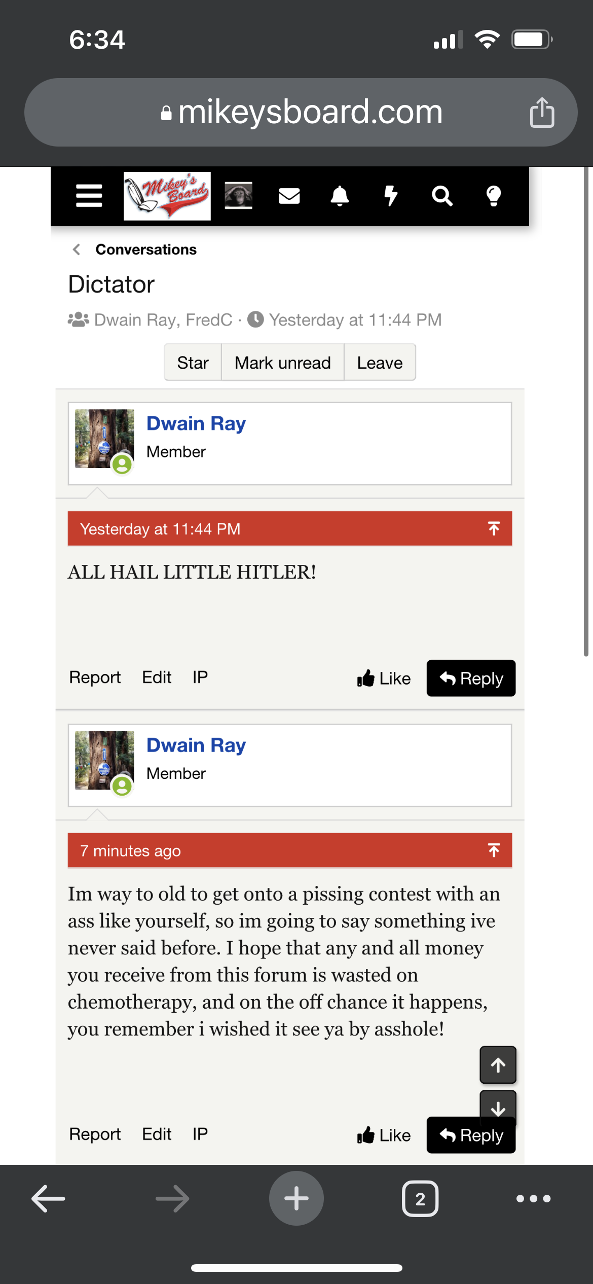 "Im way to old to get onto a pissing contest with an ass like yourself, so im going to say something ive never said before. I hope that any and all money you receive from this forum is wasted on chemotherapy, and on the off chance it happens, you remember i wished it see ya by asshole!" - Dwain Ray