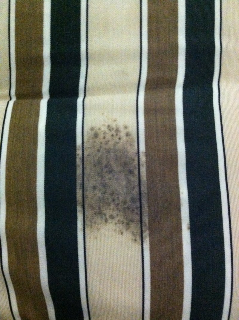 Large pool furniture set with black dots & this one corner thats close to a tree but not directly under it is particularly bad, I have tried Prochem Solvent Cleaner, Vac Away Spot-N-Boost & even Hel-Gel Orange with very little improvement, its not sticky & small black spots are everywhere, pretty much shade all day.