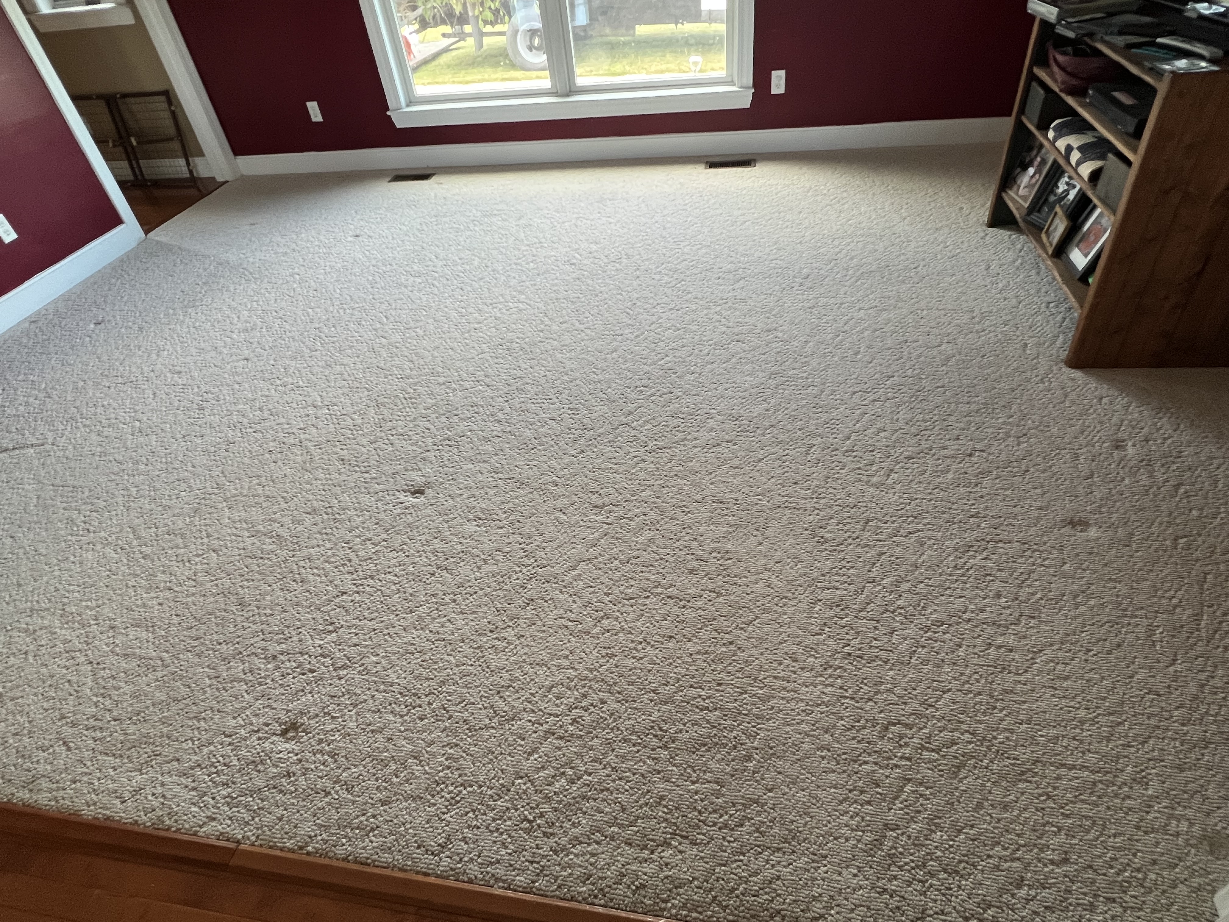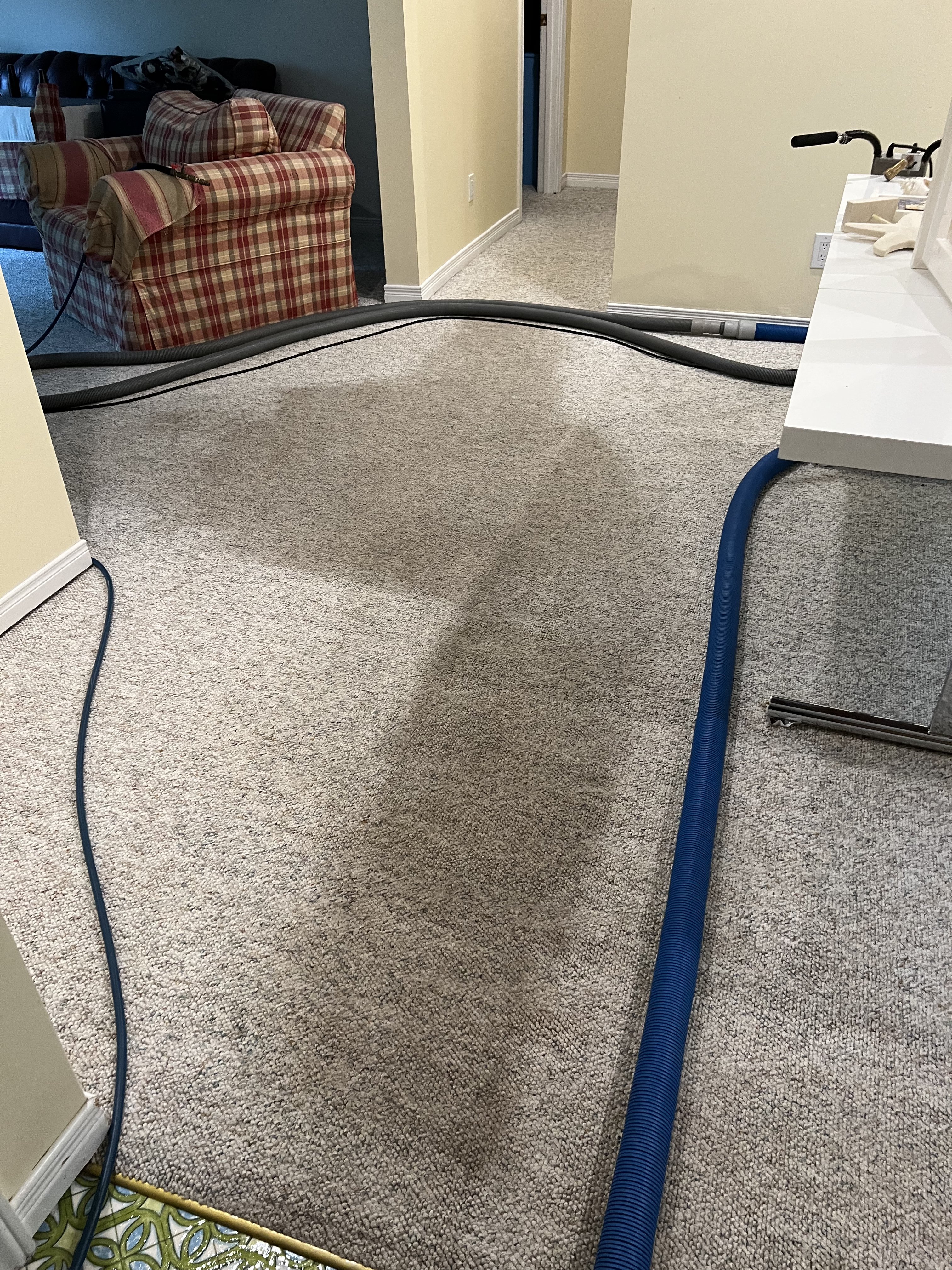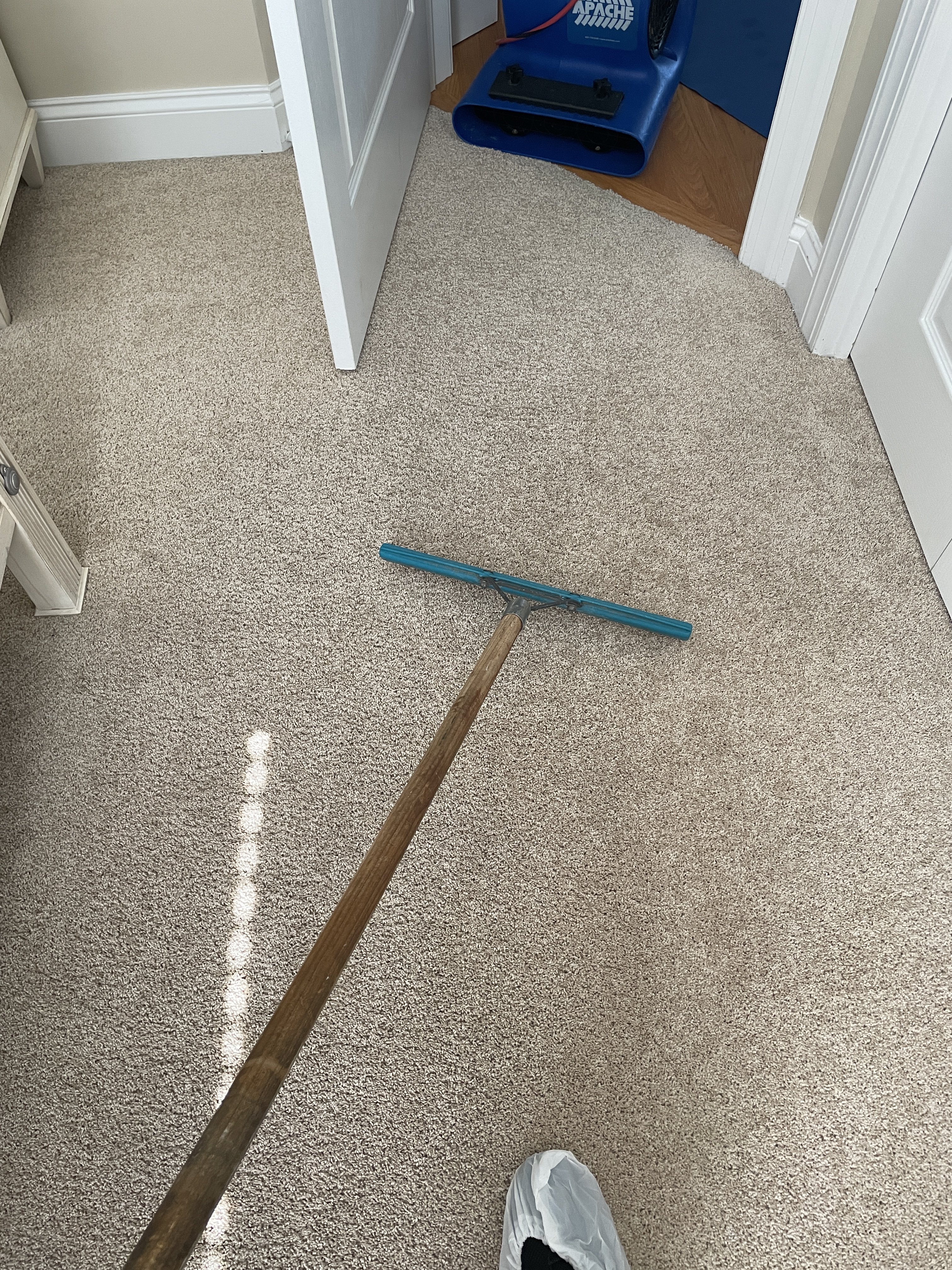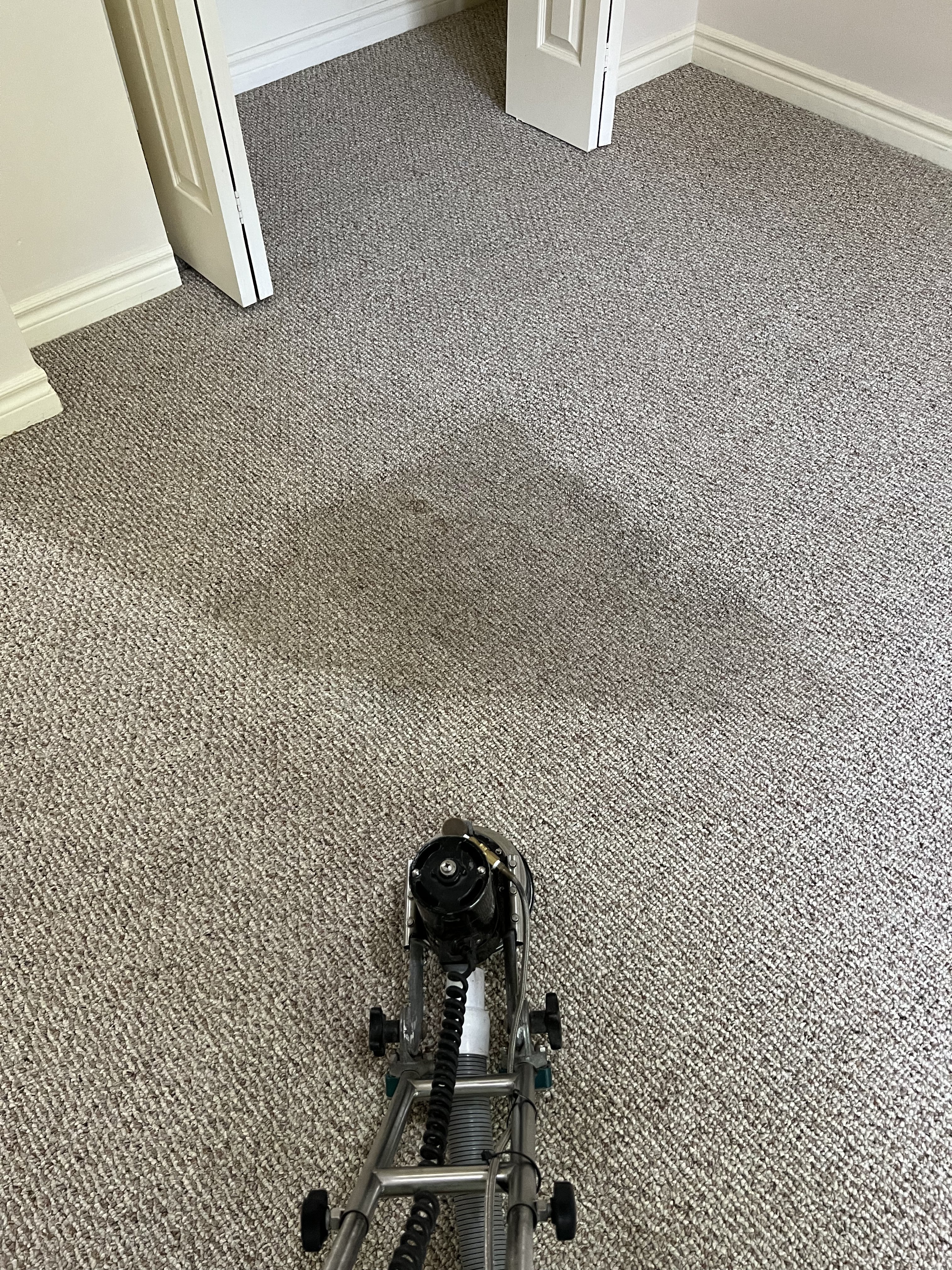 RotoVacJr all the wayWent over this more times than I can count wet, and even more dry passes. Very stubborn, maybe somebody fumbled a big bong? Air mover key, even for 10 minutes.