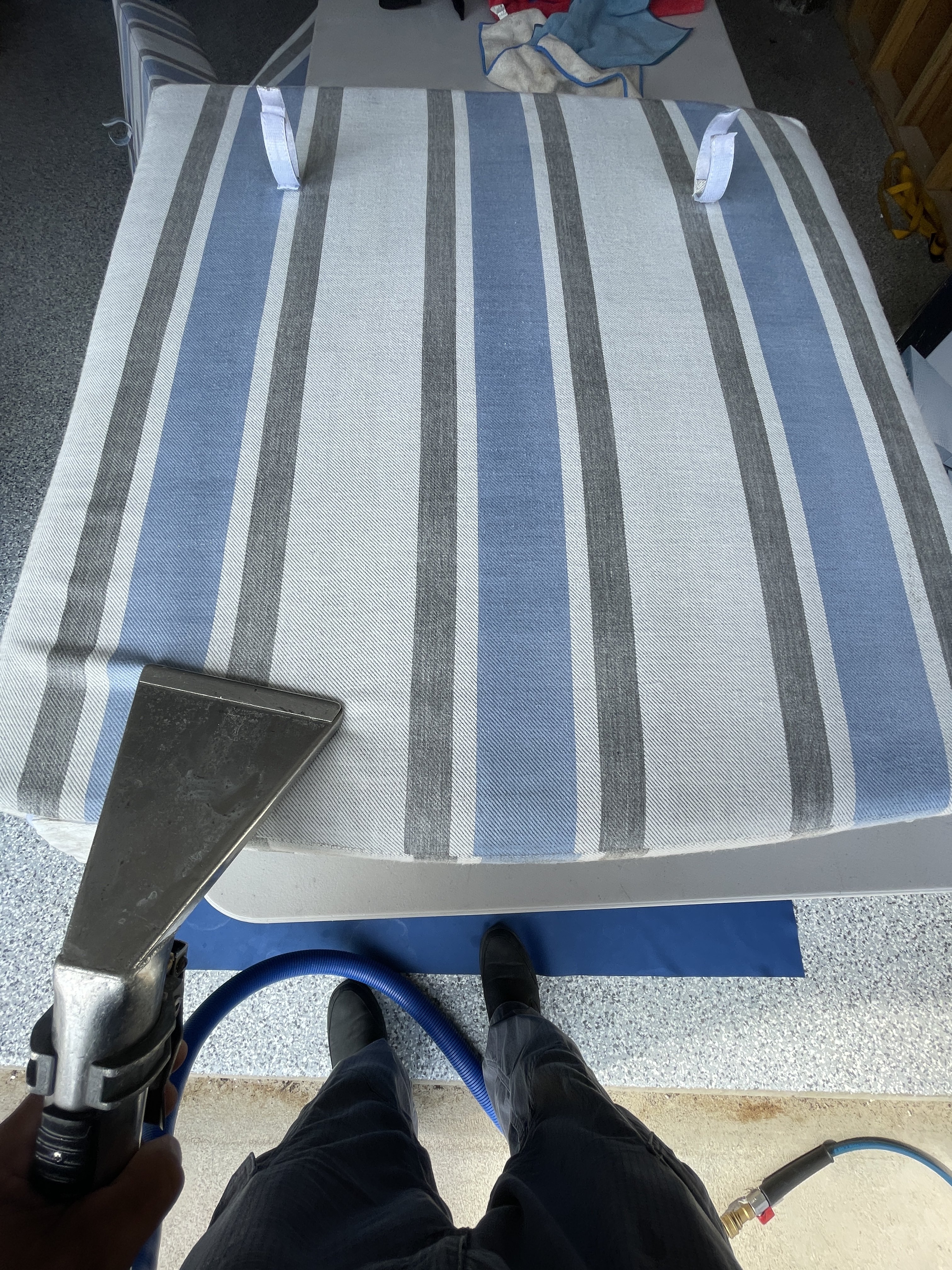 First job, sectional. Was 30 minutes into cleaning the 2 pieces with all the cushions off. I flipped the one, did my vac and cleaned. Next flipped the other piece. Vacuumed pretty hard, a lot of hair.
