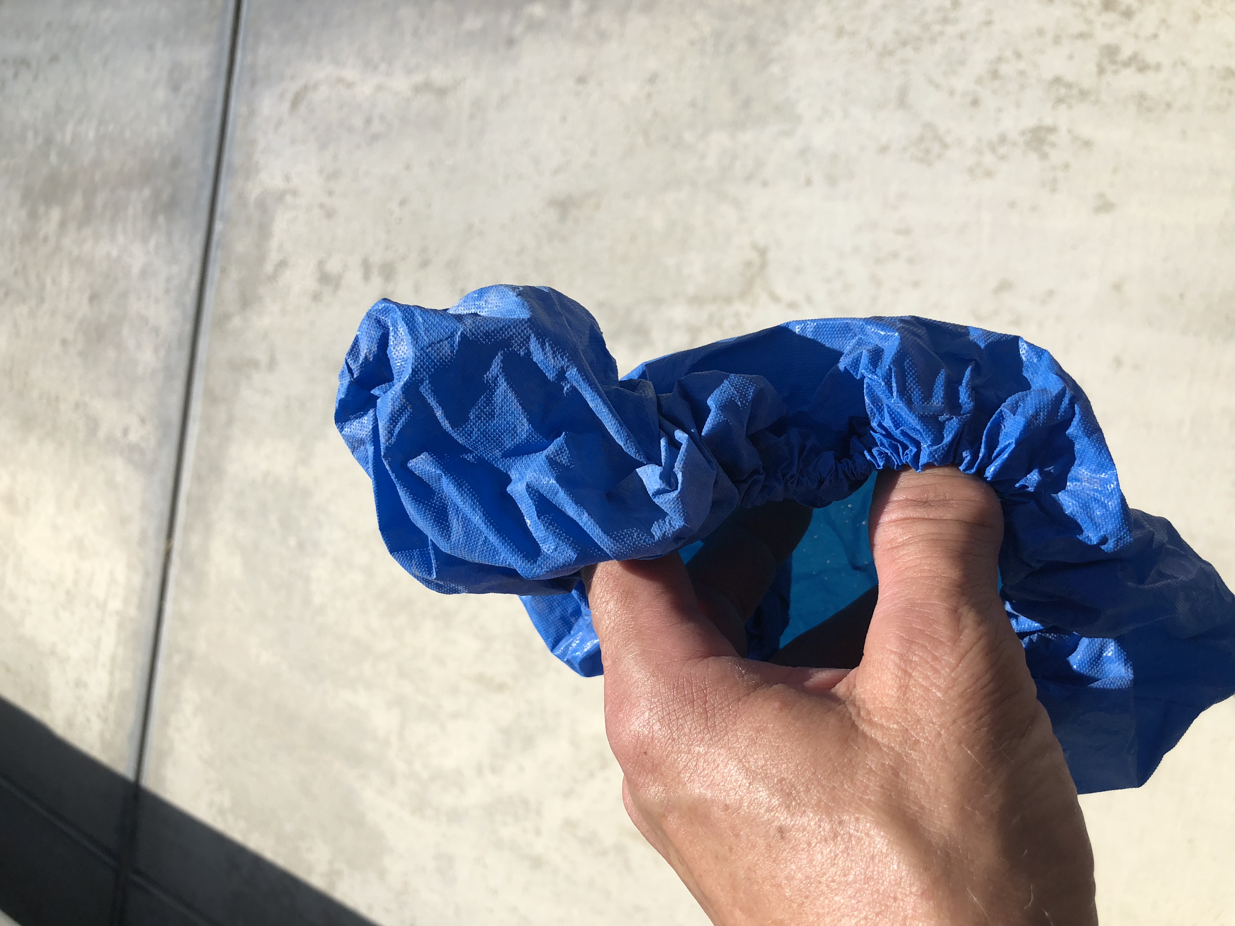 Sure enough I’m protecting my shoes with plastic shoe covers and I fall on some outside cement steps