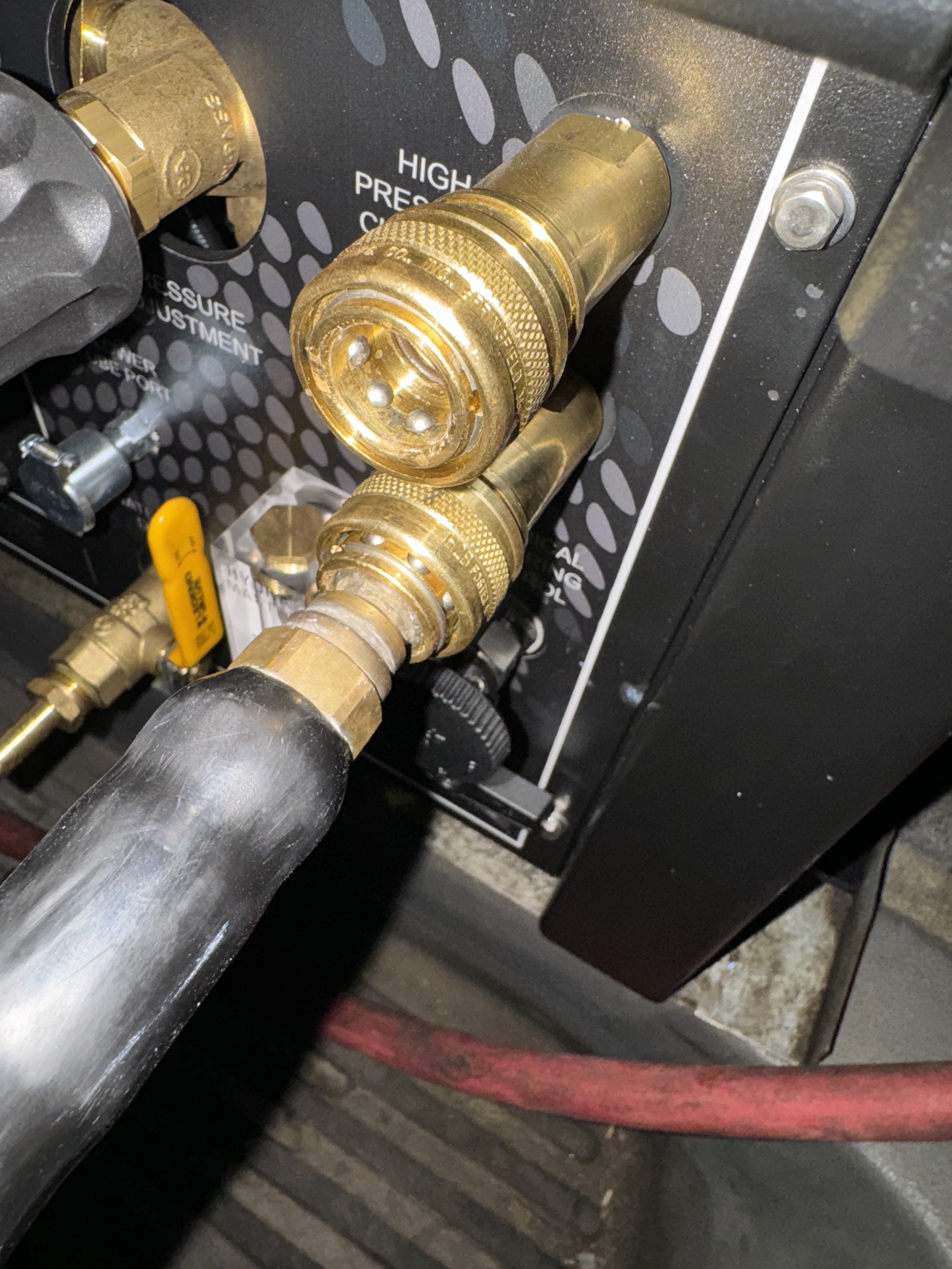 Hello, i recently purchased a brand new titan 575. For some reason the solution line will not hookup to the hp outlets on the front of machine. Feels like theres pressure built up in the outlets themselves. Is there a way the bleed this out from the machine?