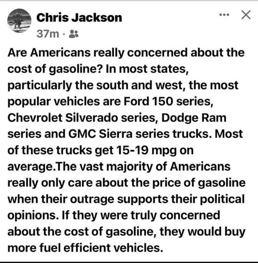 most cry babies are drying 15mpg mega trucks on the weekends being my point.