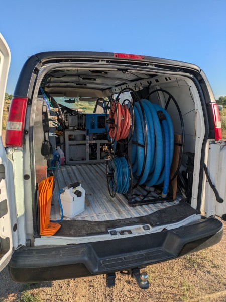 It's finally time for me to retire and I am selling my 2016 Chevy van 2500 with a Sapphire 370 truckmount. It comes with wand, stair tool, tile cleaning tool, upholstery tool, 150 feet of pressure hose and vacuum hose. The van has a 4.8 L engine with around 55k miles and the Sapphire has 1822 hours on it. Both are in good condition and run well.