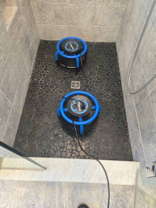 Is the weird shape to the efflorescence just the way water pools in the shower pan?