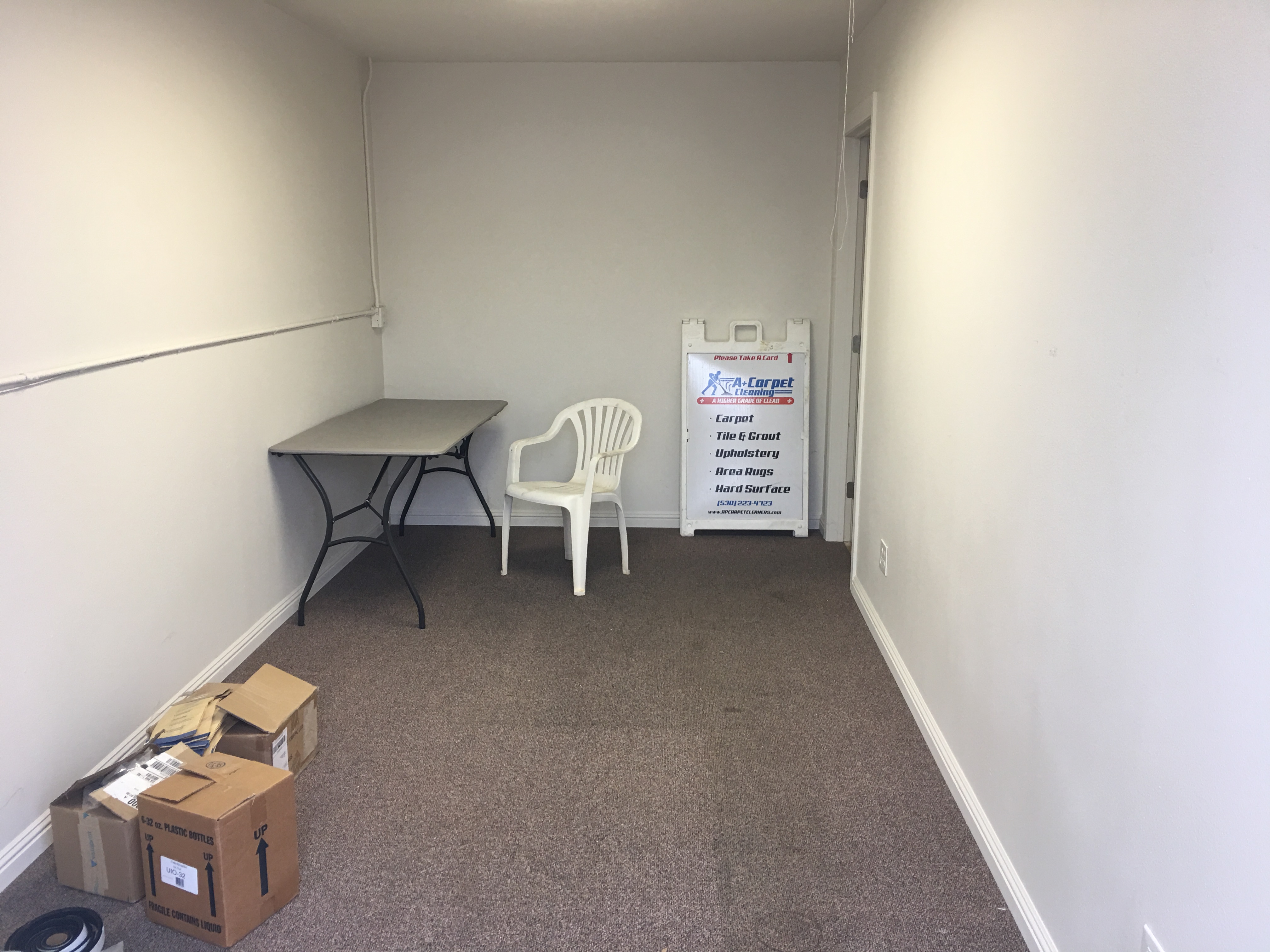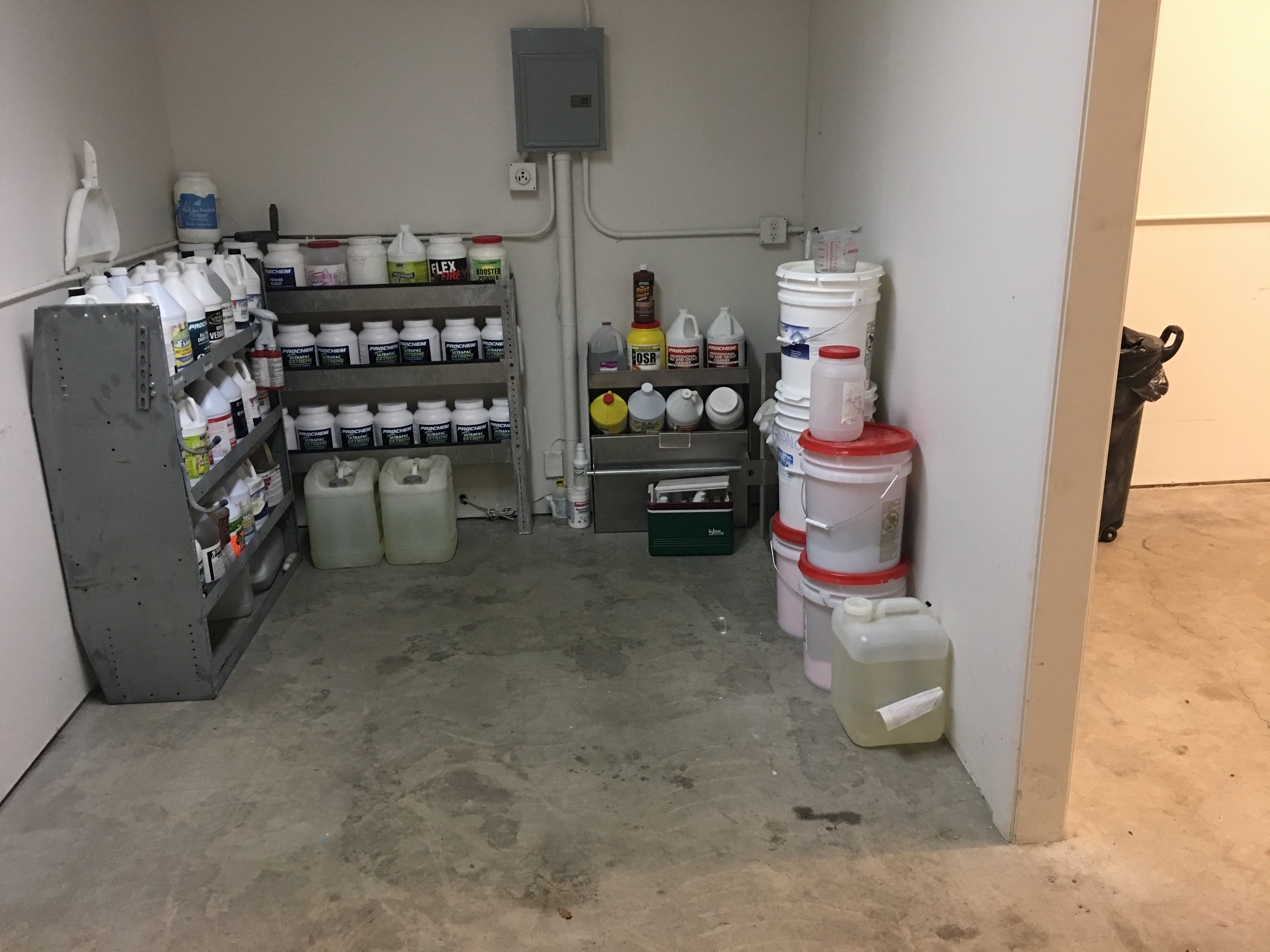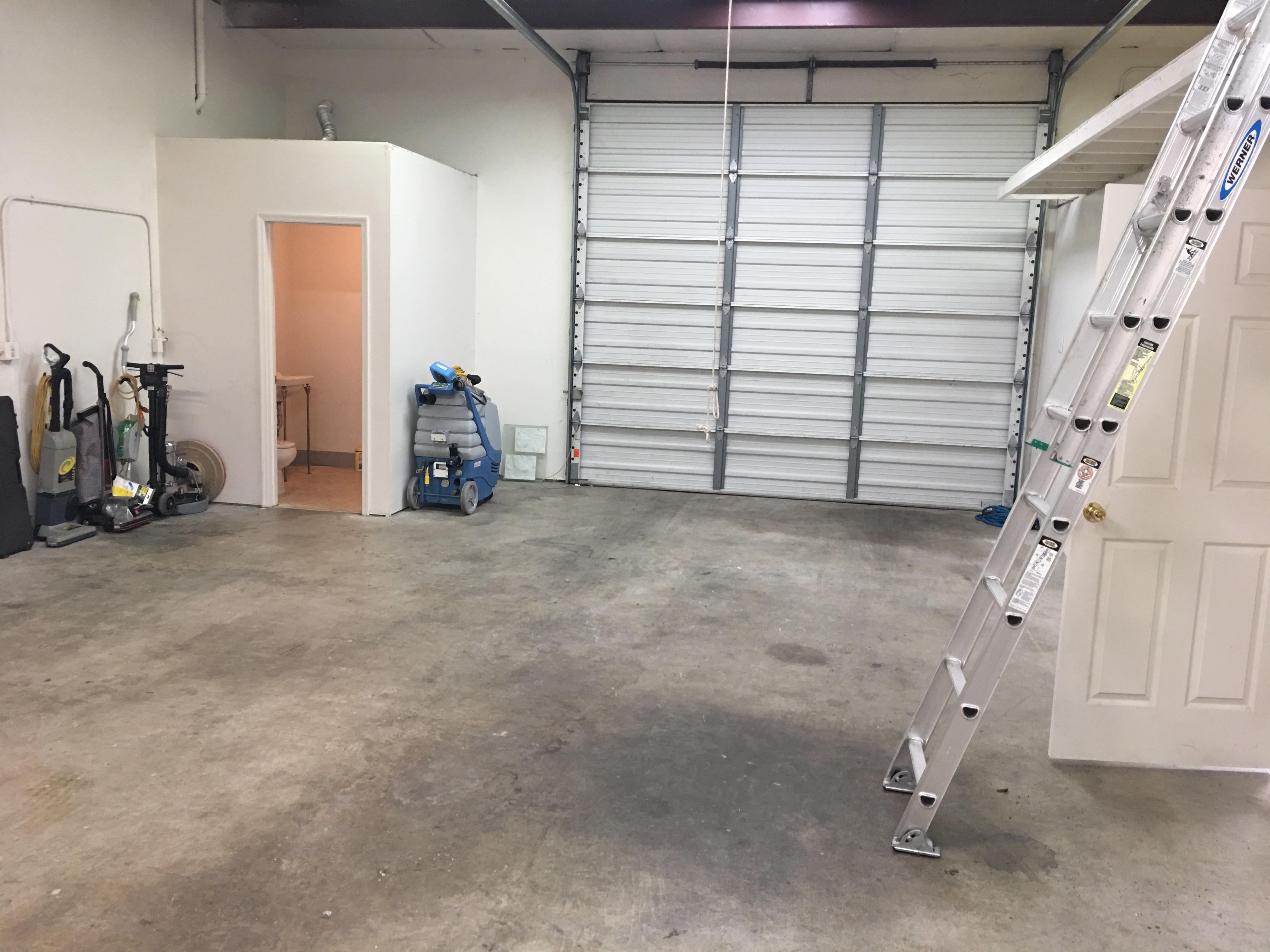 I just measured it. Its 1,000 sqft. Lots of overhead storage. Has an office, “Chem room” , bathroom, hot water, 110v and 220v, telephone and internet able, and a big ass roll up door I can drive my Promaster under.