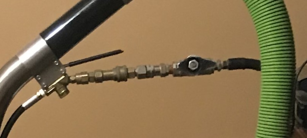 From the way it looks, it seems that he was busy one week and forgot to order male QCs. And on that busy week, his male qc on his lead hose went bad. So he dug out all the unused connectors and made the mess you see above. BUT, little did he know, he should've just used a male qc on one of his end hoses to get the job done. But when you're slammed with work, you don't think, you're in auto pilot just to get the job done
