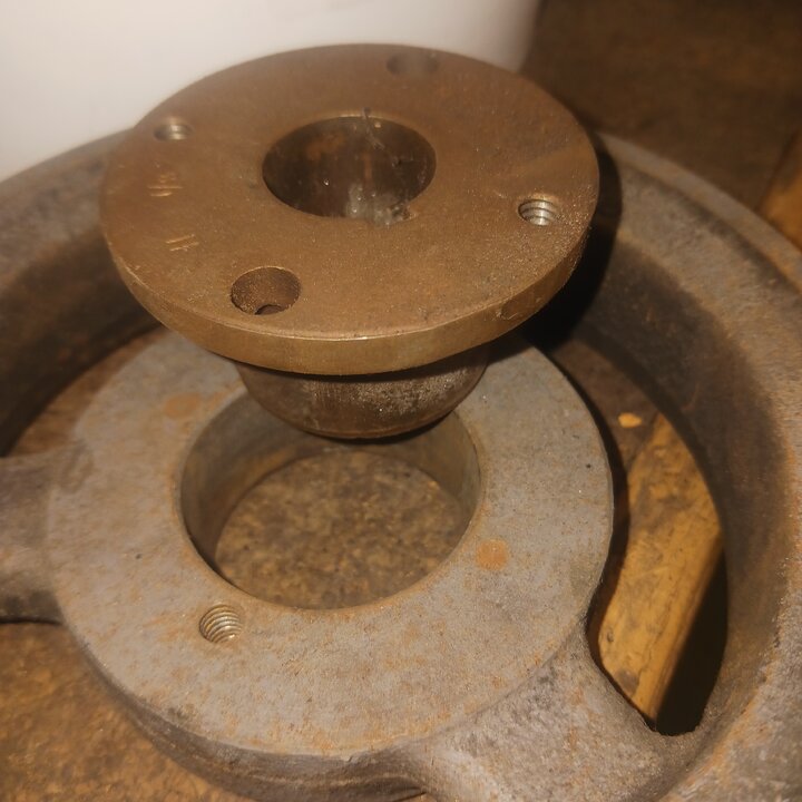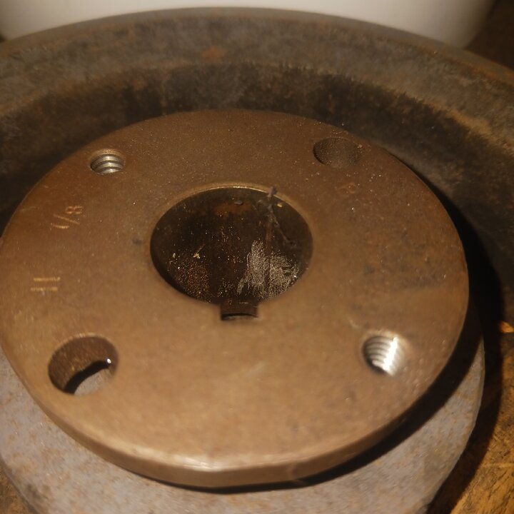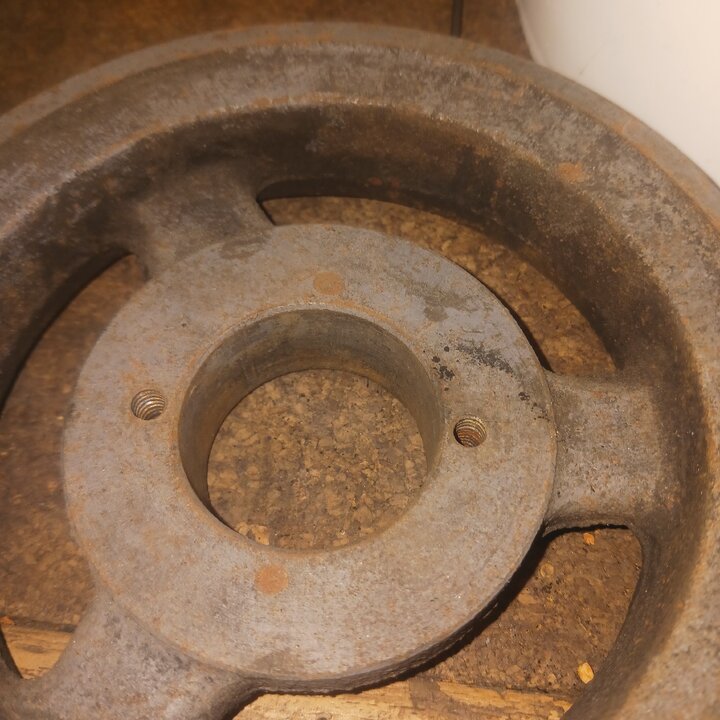 I take it you got the old broken bolt out ok? I need better pics of the pulley and brand name?? All my machines have browning pulleys with them the 2 bolts that tighten are used to to remove ( open holes to tighten threded to remove )