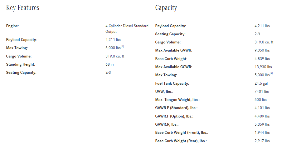 Sprinter Payload Capacity (below) = 4211 lbs
